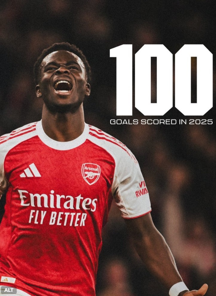 本场比赛萨卡替补登场取得进球,这也是球队在2025年取得的第100粒进球。